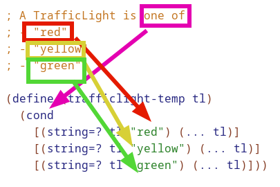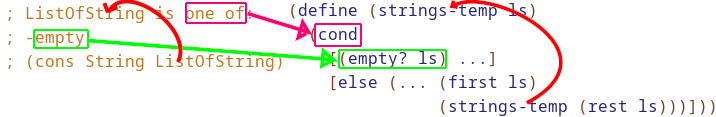 It comes from the idea that the structure of the code should mirror the structure of the data definitions. Here we can see this done in some of the data definitions we’ve done before: